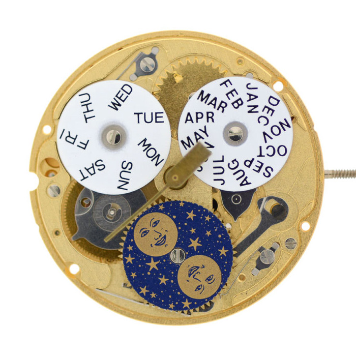 ETA 255.485 MOVEMENT SIZE: 10 1/2 THICKNESS: 2.70 MM HANDS: 70 / 120 2 HANDS / MULTI FUNCTION Moon / Calendar. Swiss Made ETA Watch Movement