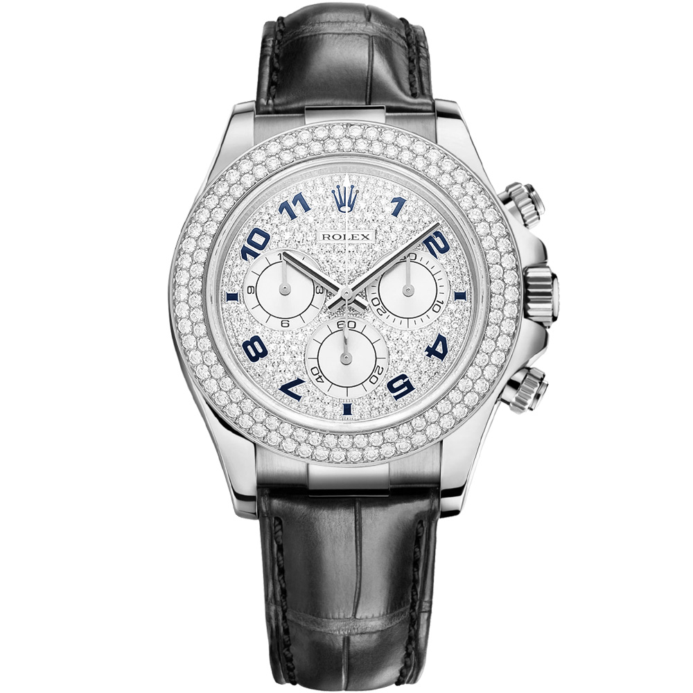 Cosmograph Daytona: 18K White gold & Leather strap – 116589RBR PAVEA