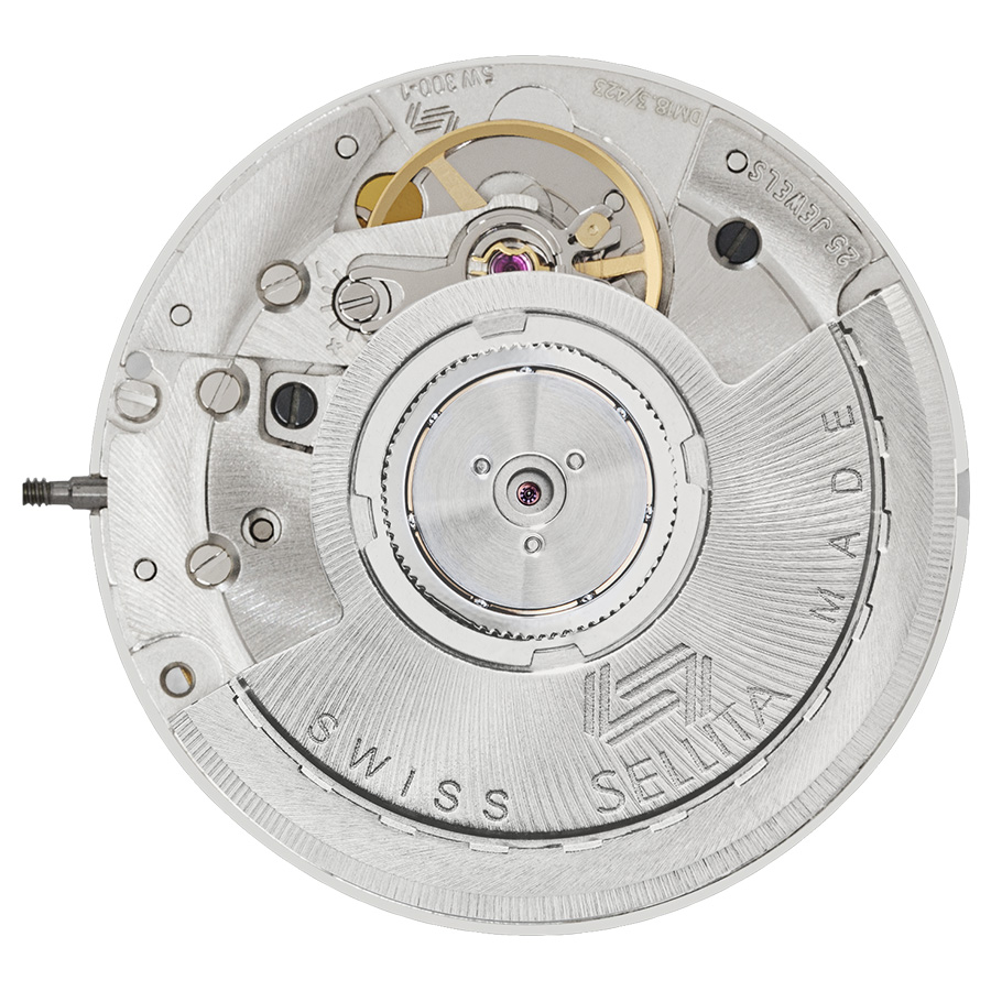 The Sellita caliber SW300-1 is a slim automatic watch movement, Swiss made with 25 jewels. This caliber is the main competitor and clone of the ETA caliber 2892-A2. Many reputable watch companies are using this movement as an alternative to the ETA mechanism due to it being more economical and readily available – and as of 2020, it also offers more power reserve than the ETA.